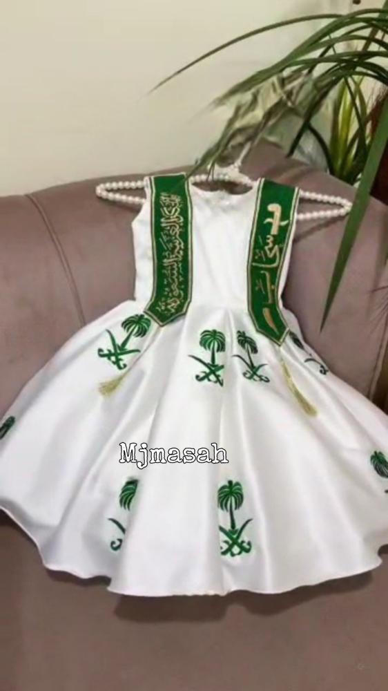 فساتين اليوم الوطني ,يندرج المنتج تحت خيار تجهيز حسب الطلبموديل الفستان قصير لنصف الساقمتوفر من عمر 6اشهر إلى 14سنة